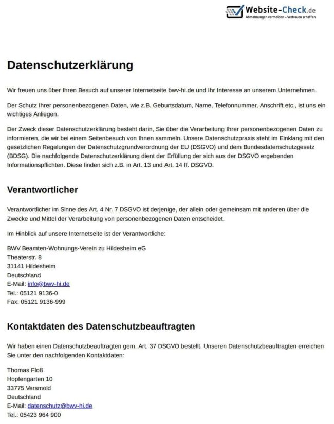 Satzung und Sparordnung — BWV Beamten-Wohnungs-Verein zu Hildesheim eG – Stand 06/2023