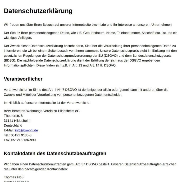 Datenschutzerklärung zur Nutzung der Webseite – Stand 06/2021