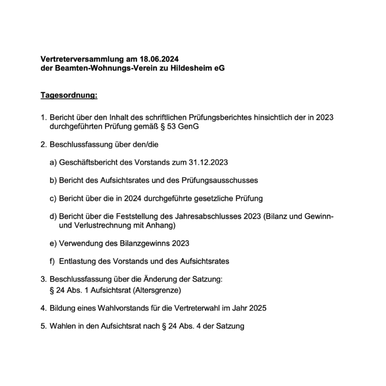 BWV Vertreterversammlung am 18.06.24
