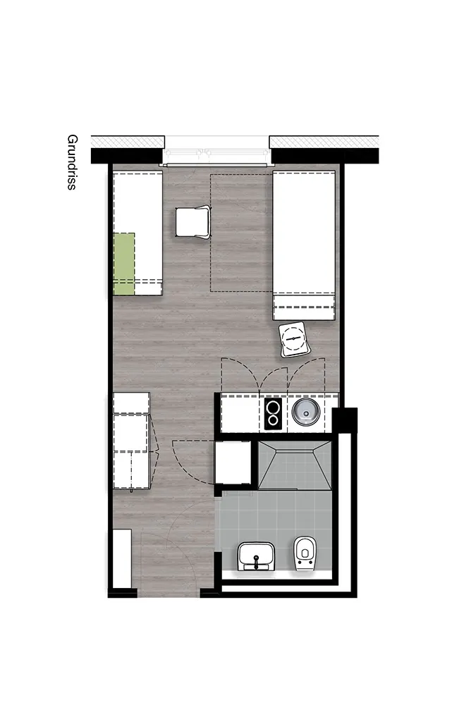 Möbliertes Zimmer im Studentenwohnheim – Inklusivmiete