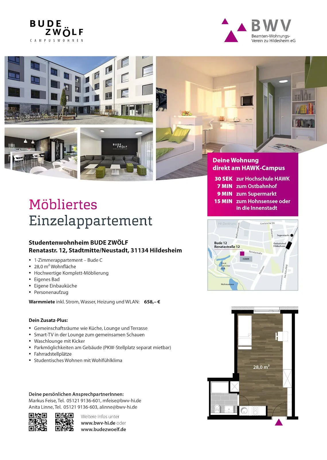 Direkt am HAWK-Cam­pus gele­gen Innen­stadt– und natur­nah 7 Minu­ten zum Ost­bahn­hof 9 Minu­ten zum nächs­ten Supermarkt